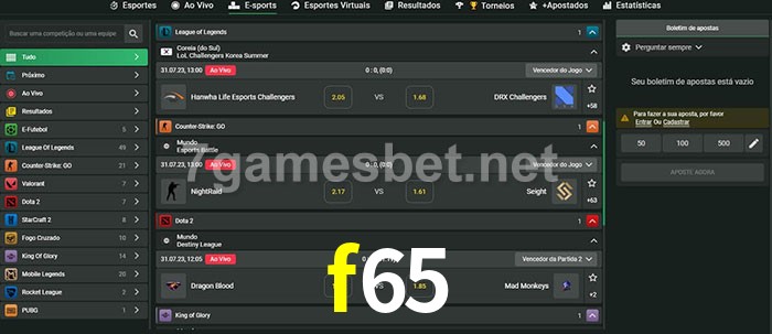 O f65 oferece uma grande seleção de opções de apostas em e-sports com probabilidades competitivas